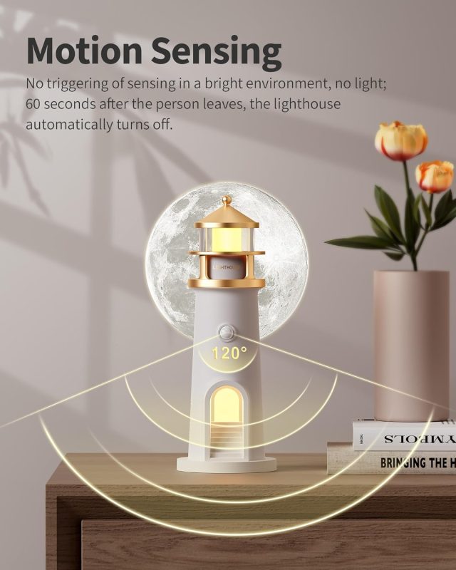 The night light includes a motion sensor that automatically activates the light in low-light environments. When set to AUTO mode, the sensor detects motion and gently illuminates the space with a soft, realistic moon projection.